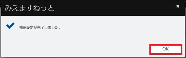 6.「機器設定が完了しました」メッセージが表示されます。「OK」ボタンをクリックしてください。