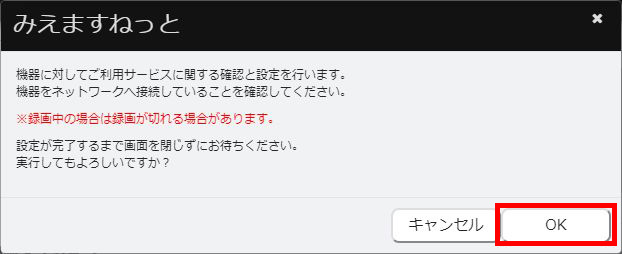 5.下のメッセージが表示されます。「OK」ボタンをクリックしてください。
